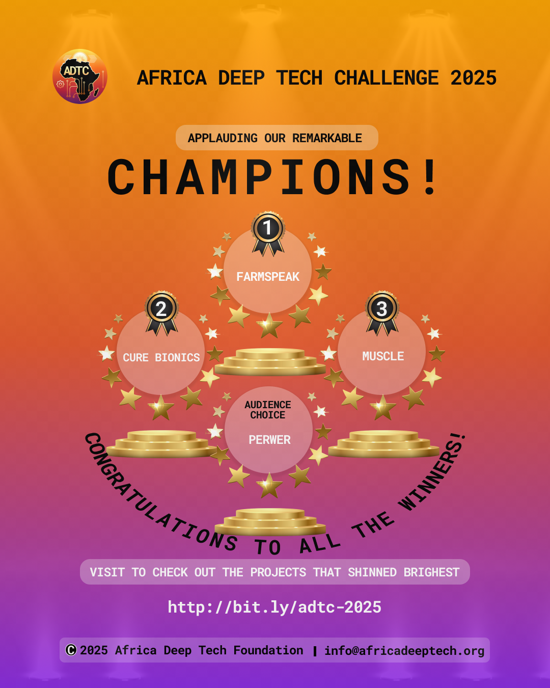 The Africa Deep Tech Challenge 2025 is a testament to the incredible potential residing within Africa's tech ecosystem. As the Africa Deep Tech Foundation, our mission continues: inspiring and educating, empowering creators, showcasing African brilliance, and building a global network.